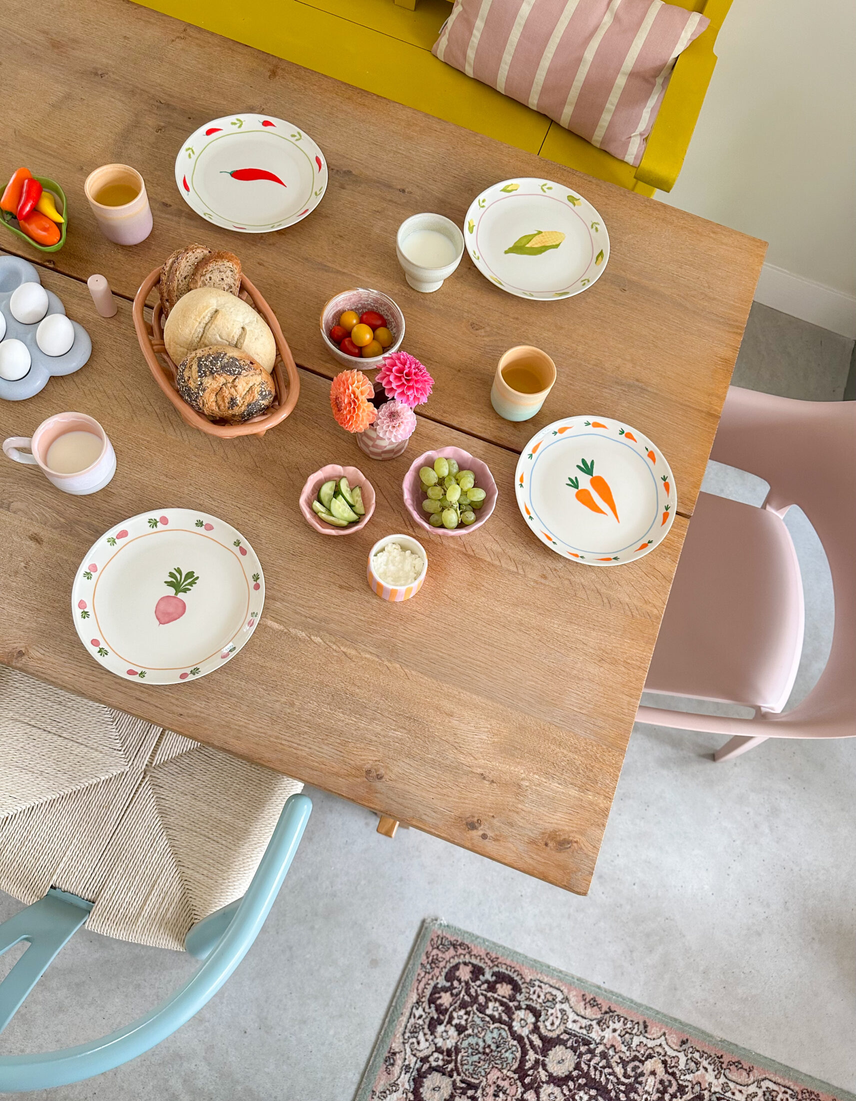 Verhoog je eetervaring met deze smaakvolle groenteborden. Met een speels ontwerp van wortel, radijs, maïs en rode peper voegen deze borden een vleugje kleur toe aan elke maaltijd. Gemaakt van duurzaam keramiek en met een diameter van 22 cm zijn ze perfect om je favoriete gerechten met flair te presenteren. De borden worden geleverd in een set van vier en zijn ideaal om je eetmomenten op te vrolijken in elk hoekje en gaatje van je huis.